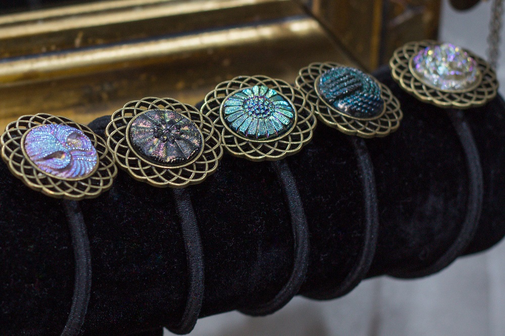 Unsere Schmuckstücke werden in Handarbeit aus Vintage-Glas hergestellt.